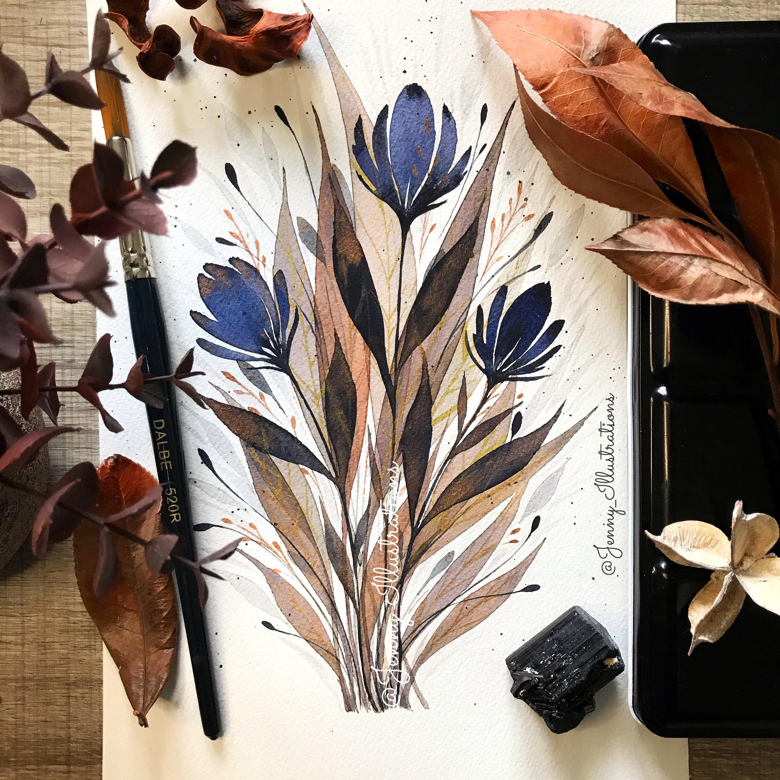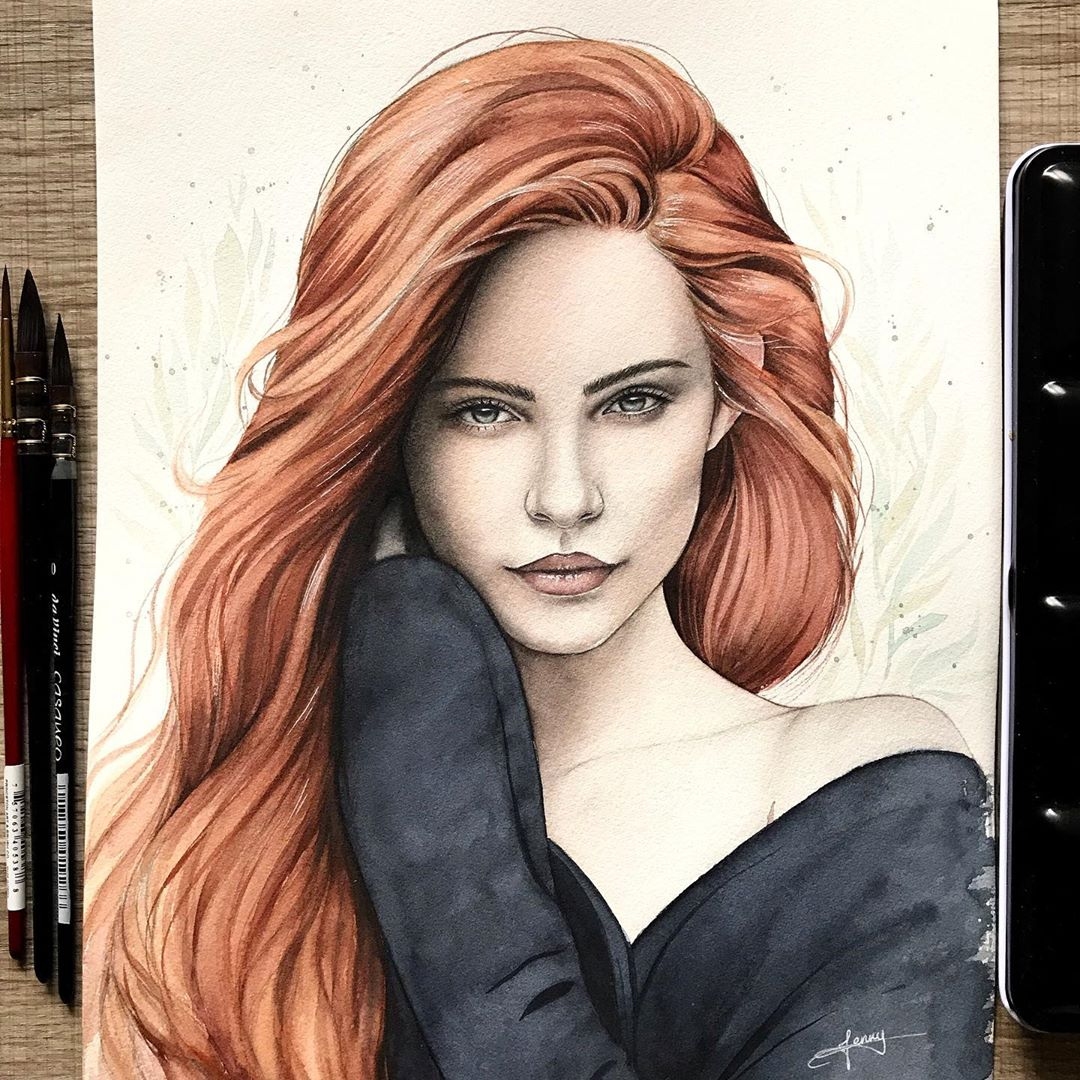 I usually find an image that inspires me in a book or on the Internet, and then I try to create something new. I start with the sketch and then I start painting. I sometimes repeat 5x my watercolors until I am satisfied with the result.