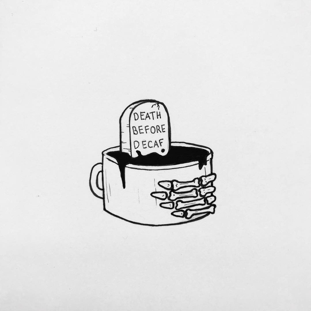 For this project- death. That sounds dark but it’s really not. My drawings are cute and funny. I am obsessed with death because it’s what gives life meaning. We’re all going to die, life is limited. We have right here and now, what are you going to do with it? I’m going to eat dessert.
