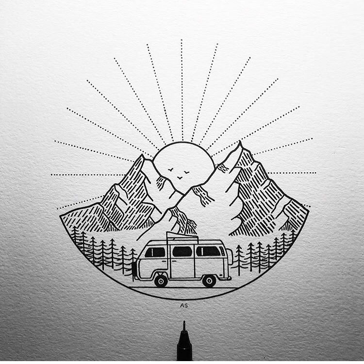 I start by sketching up my initial ideas on paper or any sketchbook I can find. I then take that idea and transform it to a really awesome Fine Grain Heavyweight paper that I use for all of my final drawings. I use a variety of Uni Pin and Rotring Fineliner Pens from 0.03 for fine details up to 0.3 for the outlines. The details tend to be a mixture of straight lines or stippling.