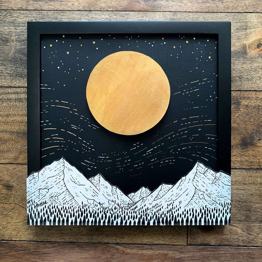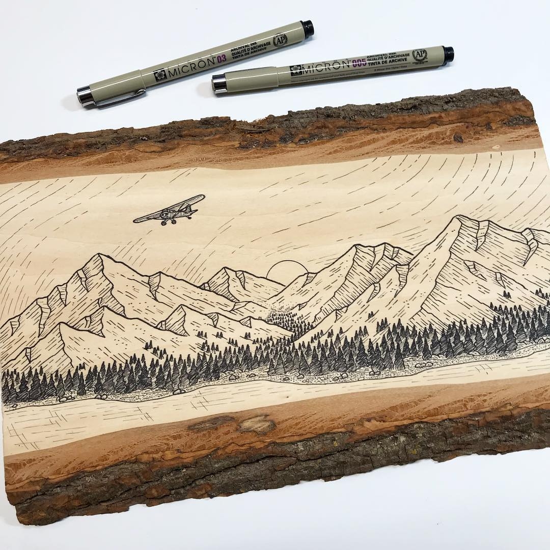 Nearly all the pieces I post to my Instagram account take 15–60 minutes, though my bigger acrylic paintings on wood tend to take 2–3 hours. Often, my smaller drawings will take longer than my really large drawings because I’ll get lost in the details. Even though my trees are usually just little scribbles, it still takes time to lay down a few hundred.