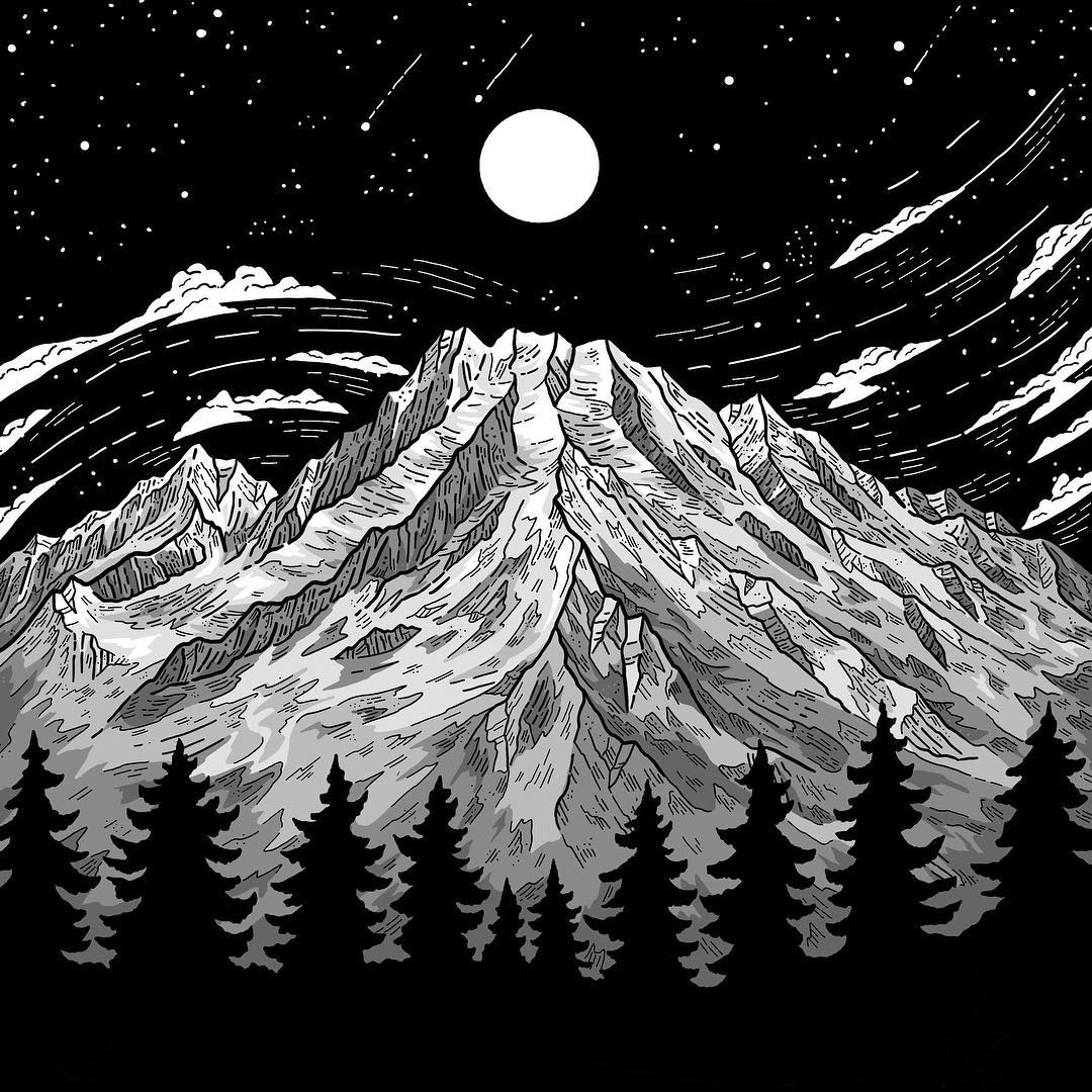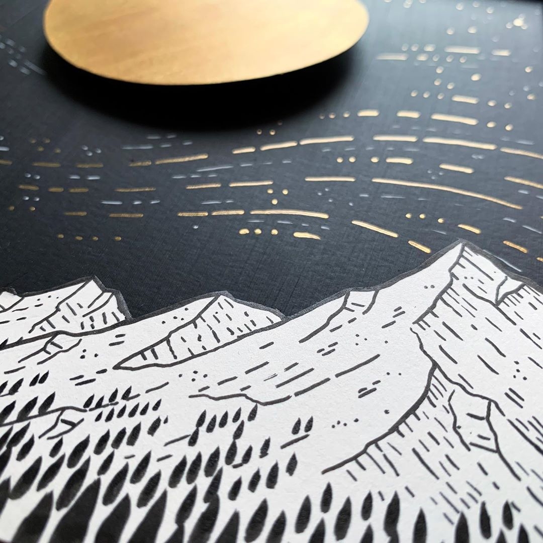 This definitely varies by project, but if I’m sketching in my classic Inkline Ridge style, I honestly don’t have much of a process. If I’m referencing a real place, I’ll sketch some primary lines in pencil to get the overall shape and proportions right before I pick up my pens. If I’m drawing a more stylized landscape, I’ll often skip the pencil stage and just go for it.