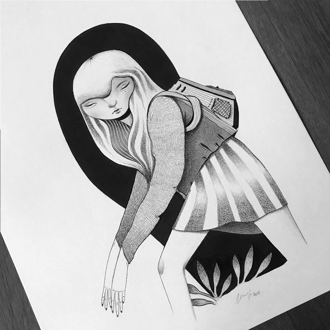 Since I was little. At the beginning I was just doodling weird faces and after my school art teacher encouraged me to do body and more details on them, I started developing my sketches even more. I remember drawing during all my school classes but after I went to college I stopped for some years. I started drawing again 4 years ago.