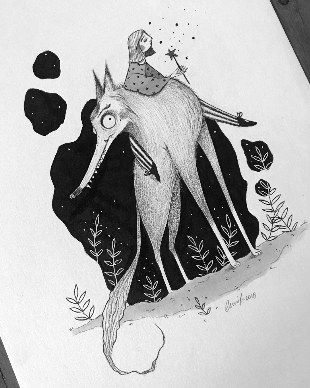 Everything that surrounds me can be a source of inspiration such as nature, animals, poetry, music, people, movies and so many more. Need to mention that Tim Burton’s work influenced me a lot.