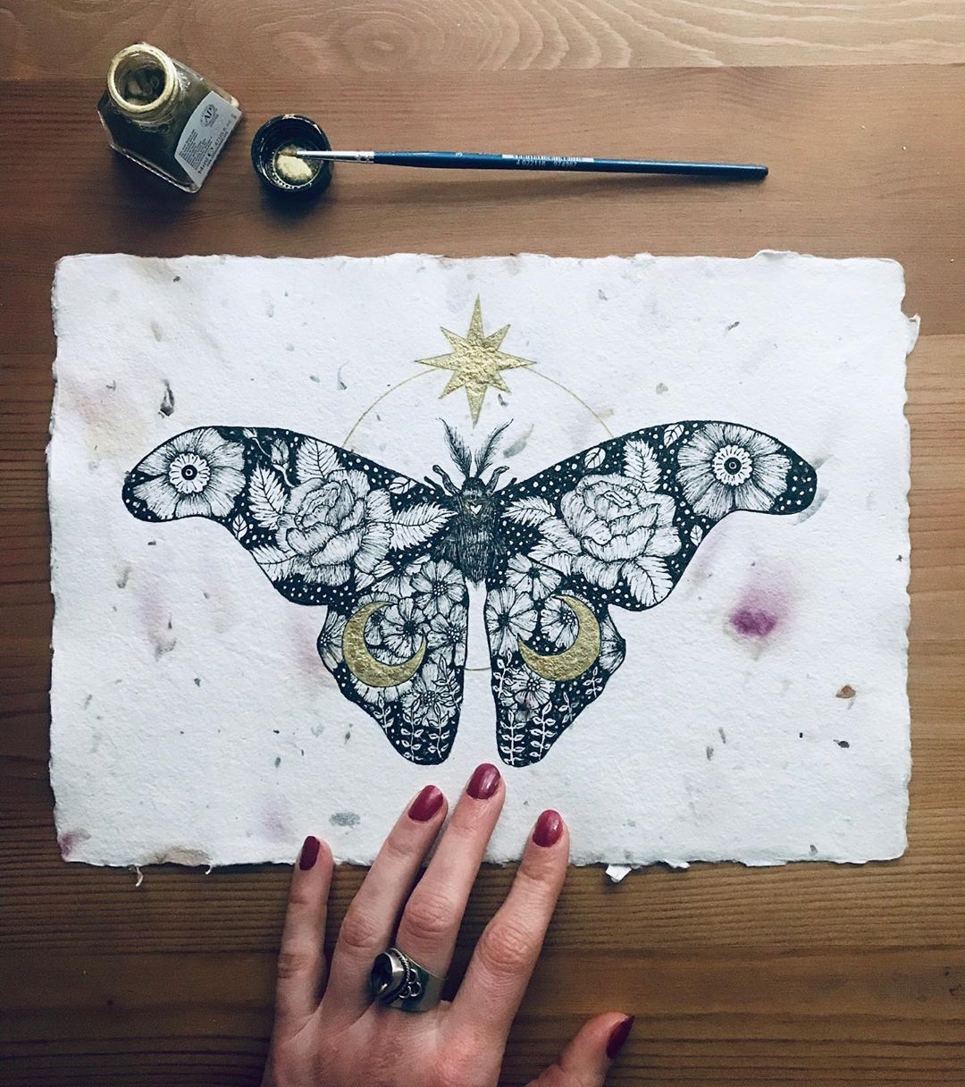 Traditional. My passion and obsession with drawing materialize in the point of contact between paper and pen and in the sound that they produce together. The different types of paper, and above all, the pens, are my great obsession.. the pens.. I have a lot of them and when they finish I don’t have the courage to throw them 🙂 I have drawers full of pens of all kind, I know them all and I’m very jealous of each of them. It is almost impossible to steal one from me, my friends know that:) I also use the iPad when I need it, especially when I have to create a graphic that will then be printed on clothing, because in that case I need a very clean file to create the screen printing frame. I lso use it when i have to change a design for a tattoo. It is very useful for these things.